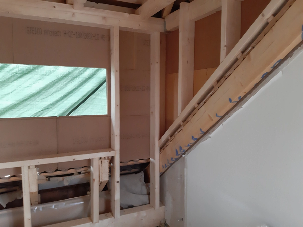 Die Details wurden weit vor der Ausführung so ausgereift, dass die Fenster fast zeitgleich eingebaut werden konnten. Dadurch war der Bau schnell wieder sturm- und regensicher! Durch die neuen Gaupen wurden Wohnfläche und Wohnqualität wesentlich erhöht, wodurch sich zukünftig 2 Familien unter einem Dach wohlfühlen können.